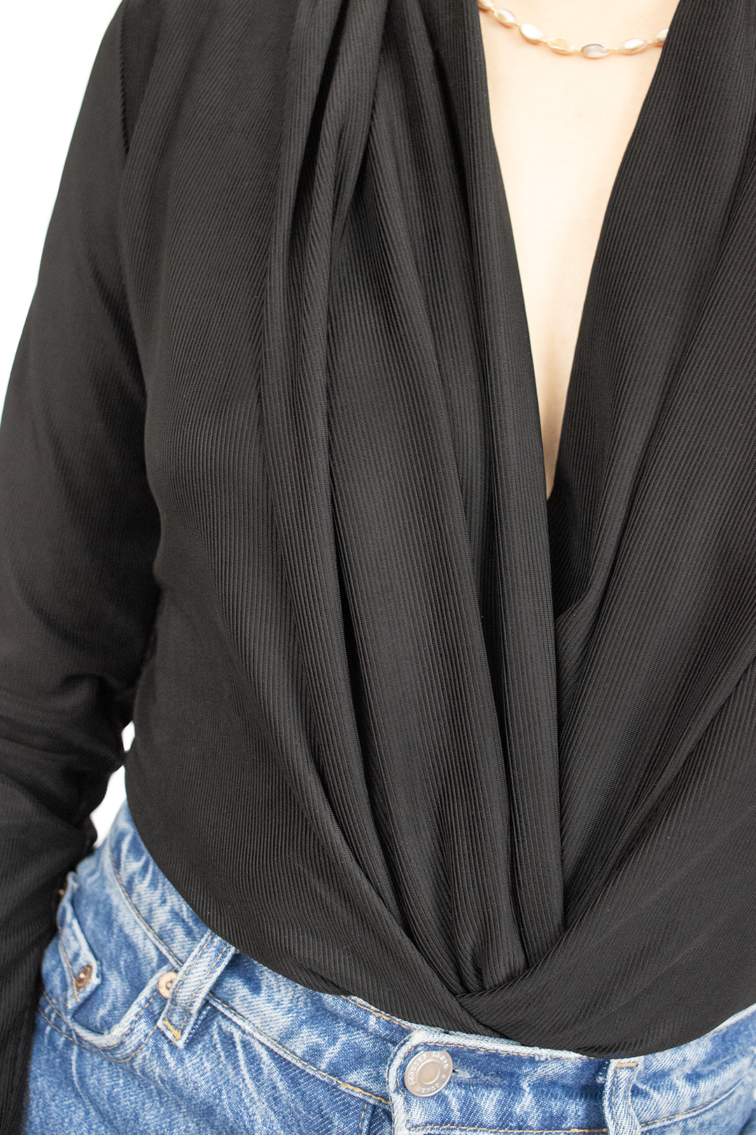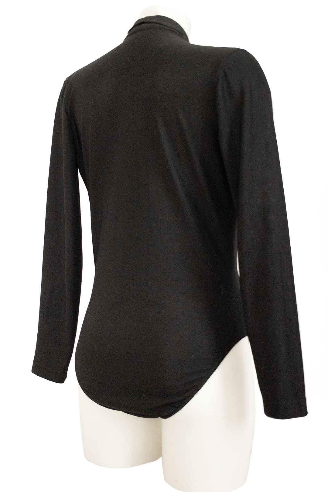 Body vintage preto elegante. Decote em V com drapeado na frente. Material com elasticidade e canelado. Tamanho S e M. Ótimo estado. Fecha em baixo com molas.