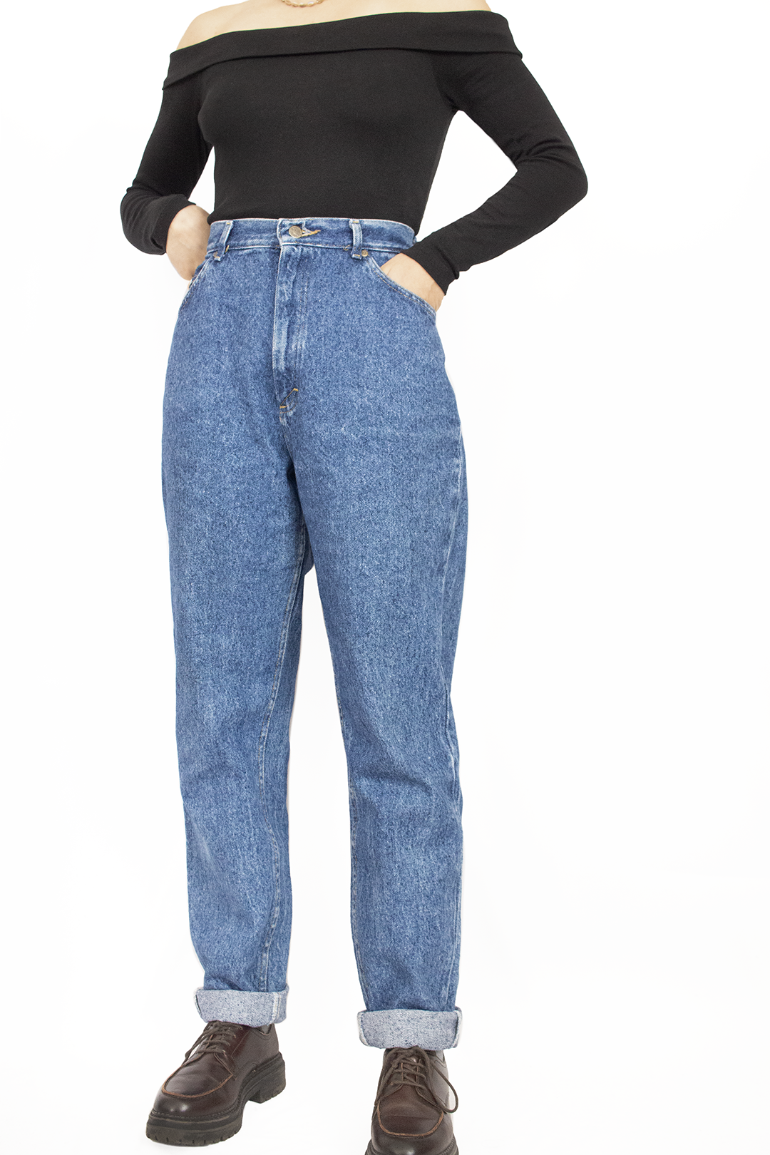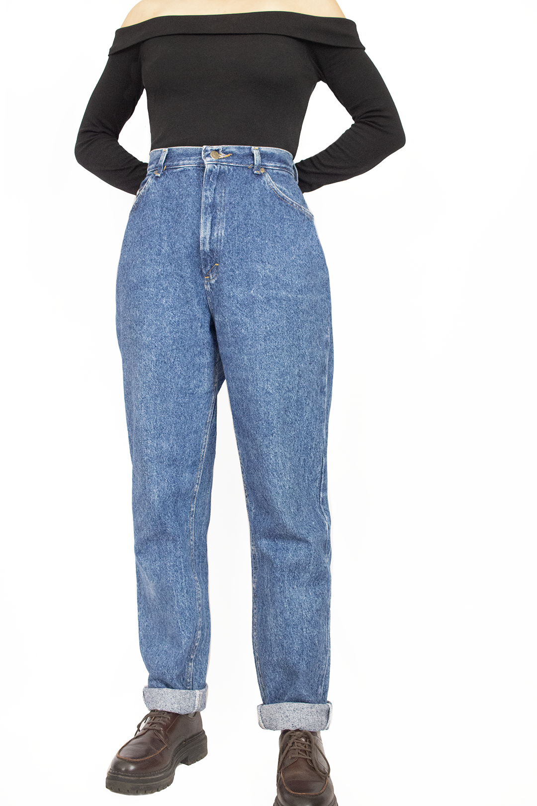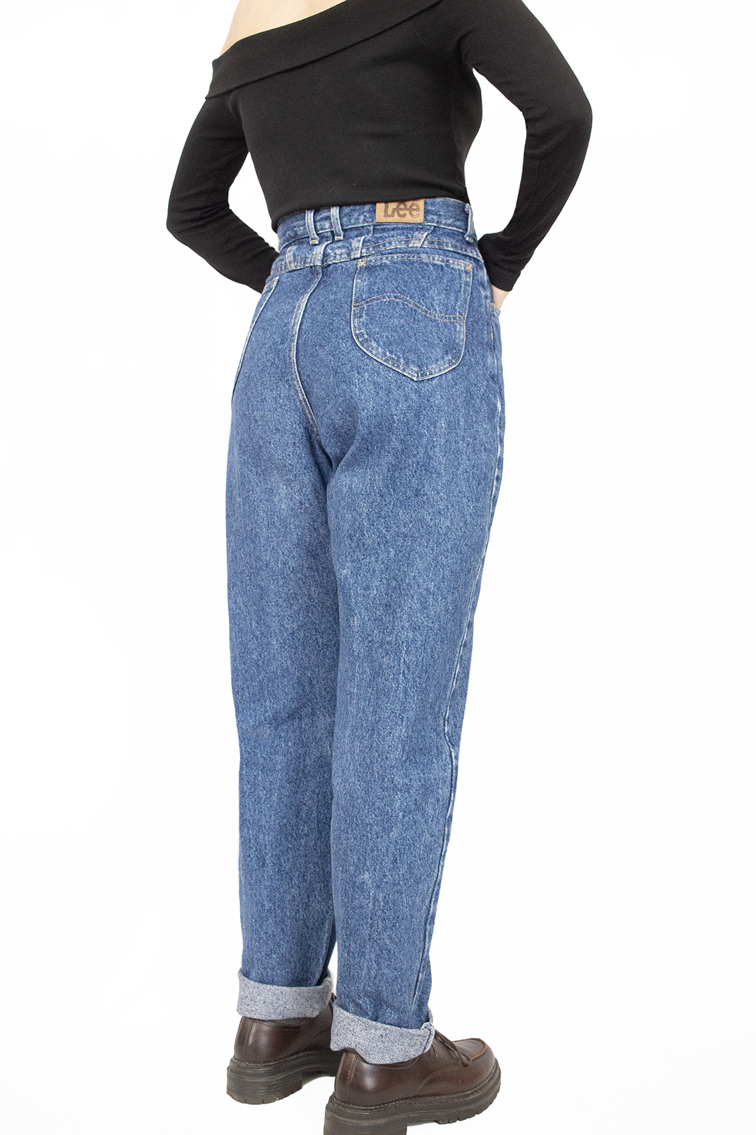 Calças vintage de ganga da LEE, corte mom jeans com cintura subida. Tom de ganga médio-escuro. Ganga grossa, de qualidade. Tamanho 38-40. Ótimo estado.