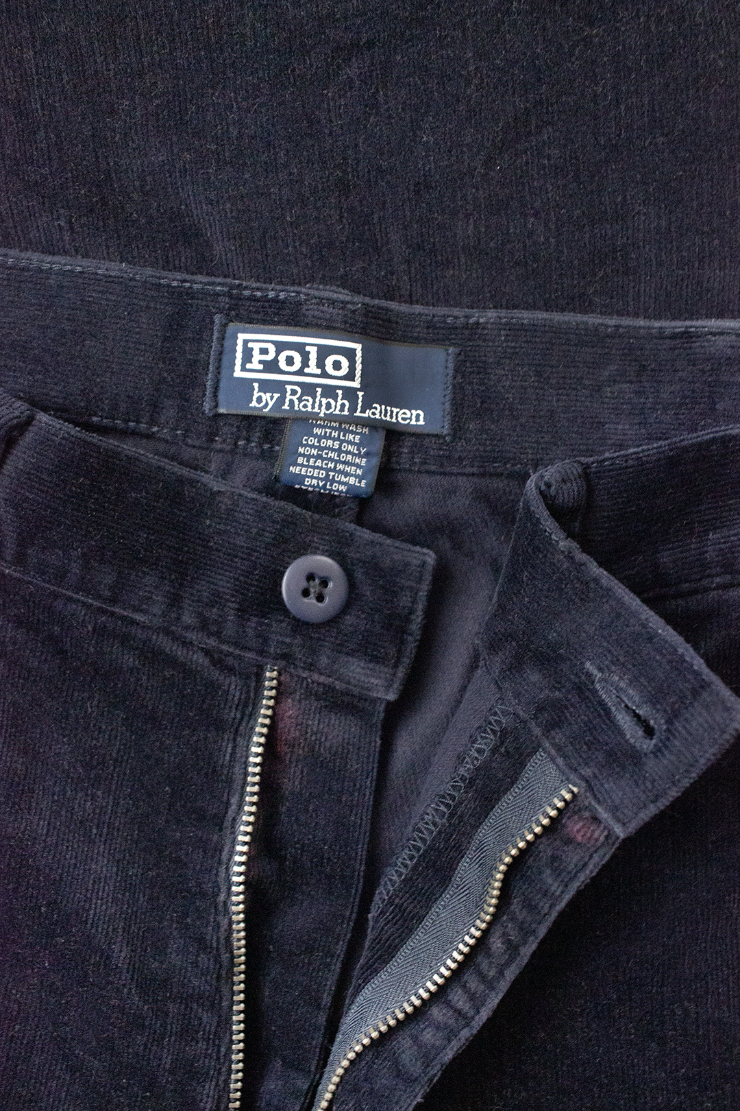 Calças Ralph Lauren azul escuras em bombazine/veludo. Cintura subida e perna direita. Perfeitas para a época festiva, por exemplo. Tamanho 44, ajustadas na imagem. Ótimo estado, pequena marca num dos bolsos atrás mas imperceptível.