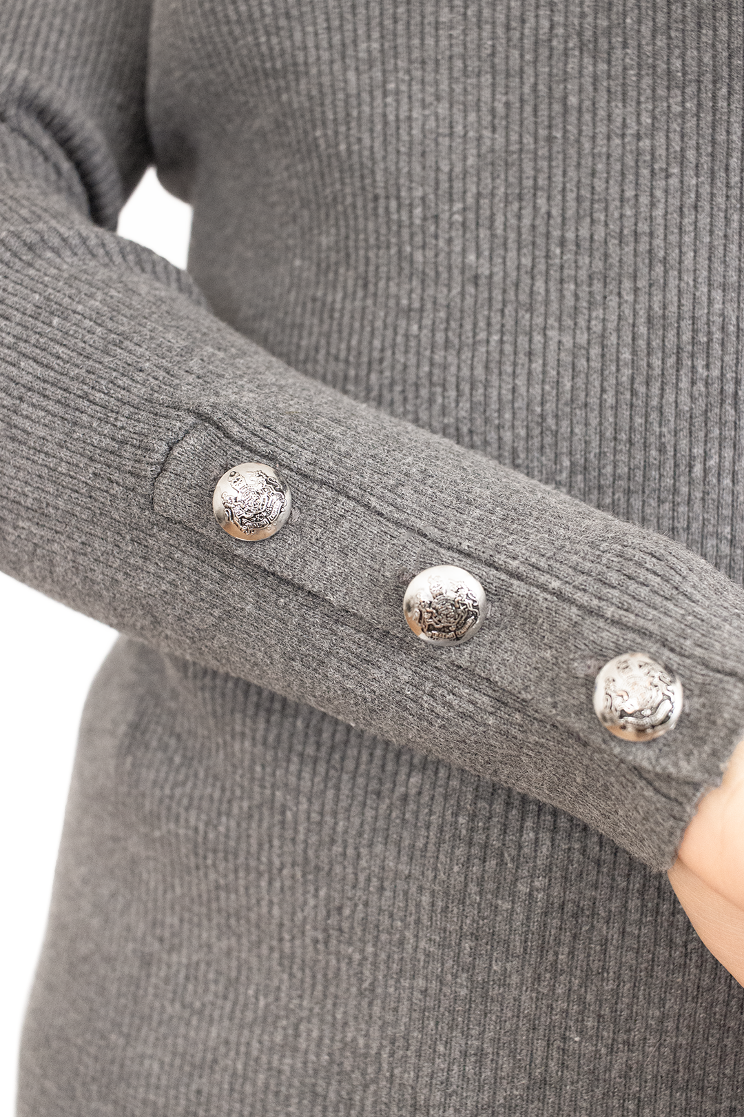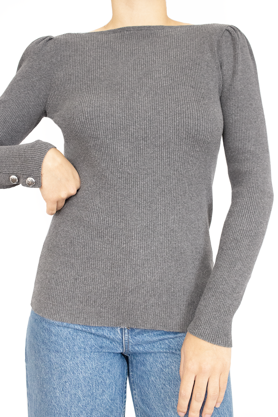 Malha cinza mesclado da Ralph Lauren, canelada. Pormenor nos ombros e botões nas mangas. Malha ideal para a meia estação, com elasticidade. Tamanho S e ótimo estado.