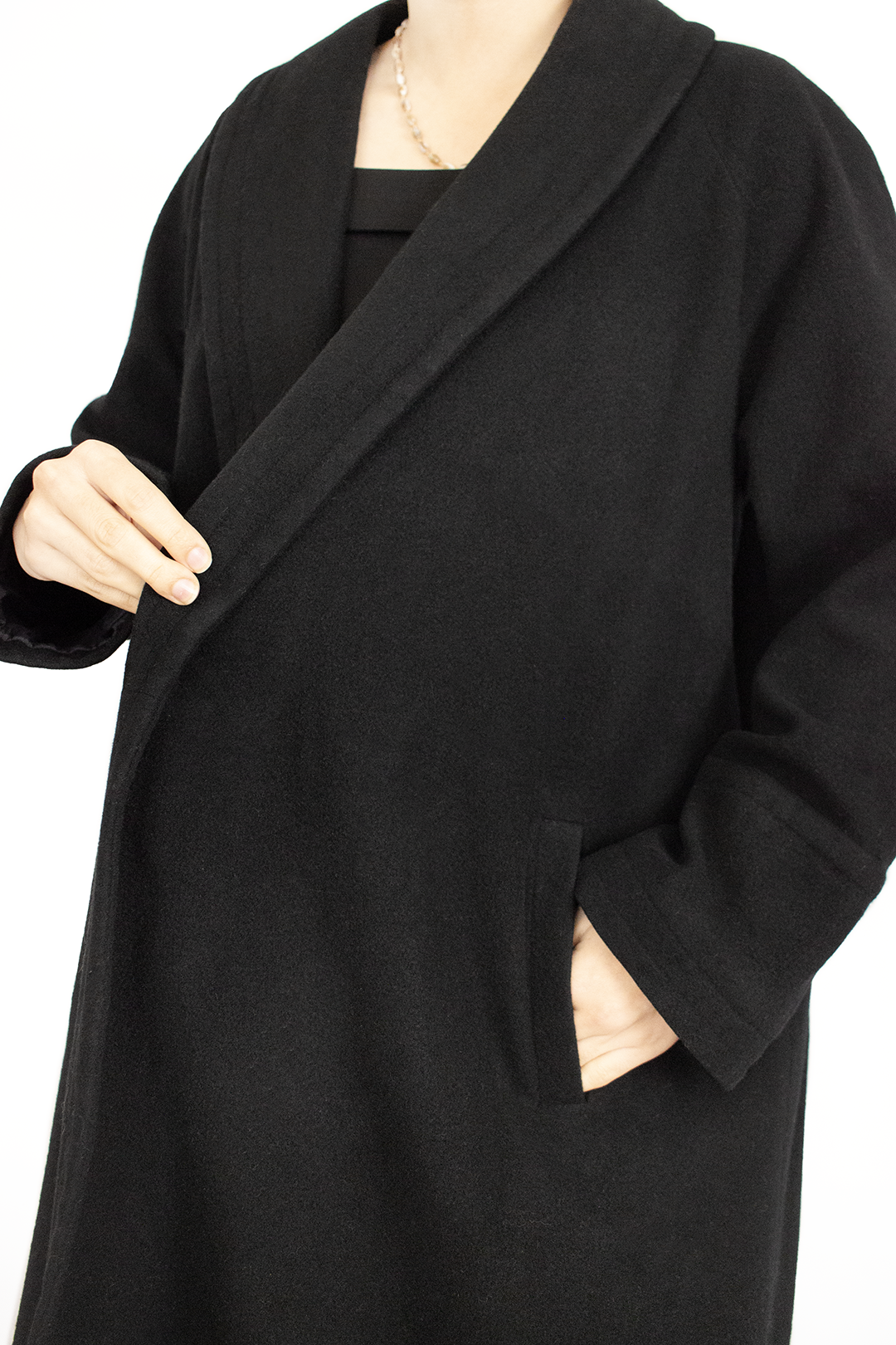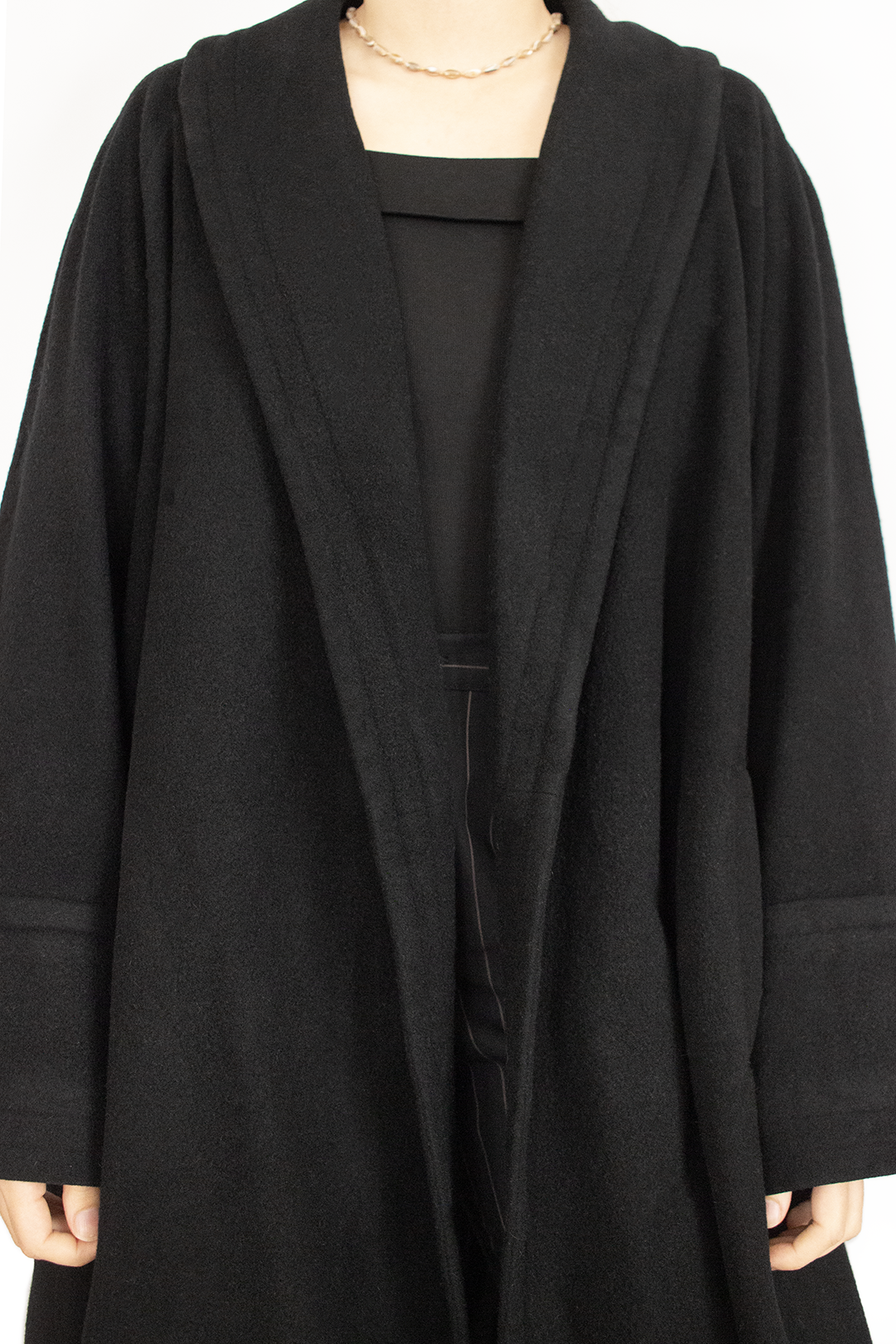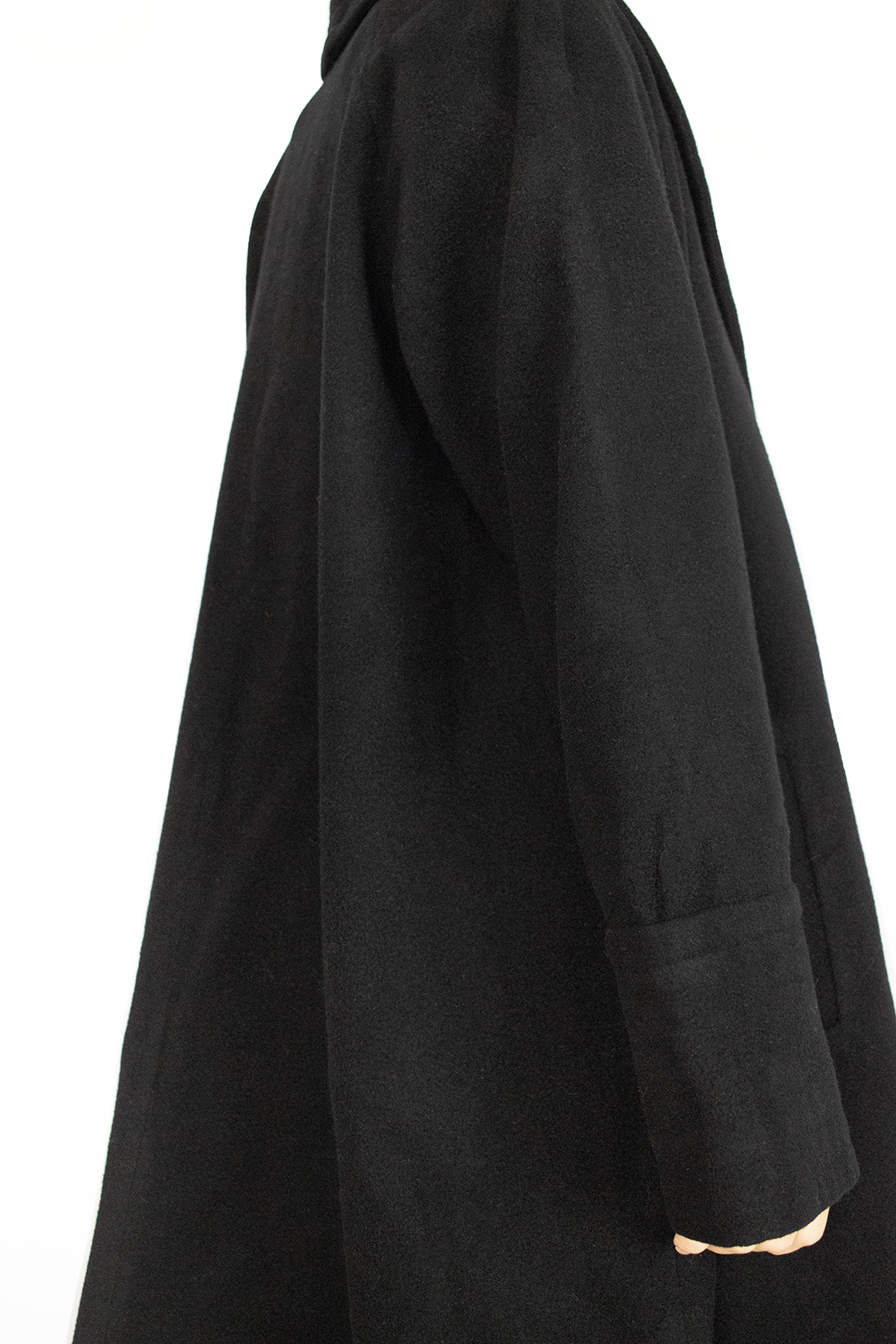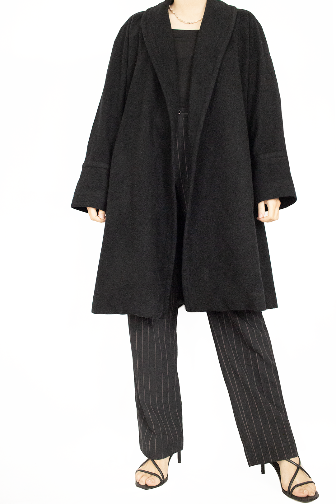 Sobretudo vintage preto. Corte em linha A, com dobra na gola. Não tem botões, fica aberto. Tamanho S-M. Ótimo estado. Não indica composição, mas nota-se que tem lã na composição.